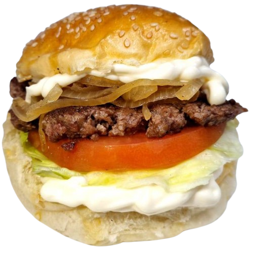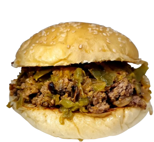 200g beef, Mayo, Cheese mushroom caramelized, onions, green peppers.